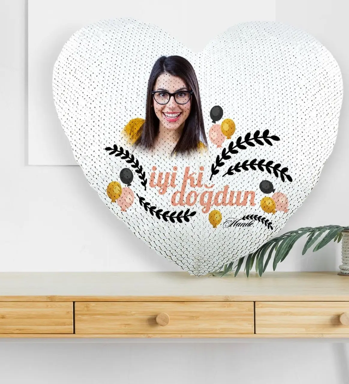 * Yastıktaki payetleri ters yöne kaydırdığınızda eklediğiniz fotoğraf görünür hale gelir.